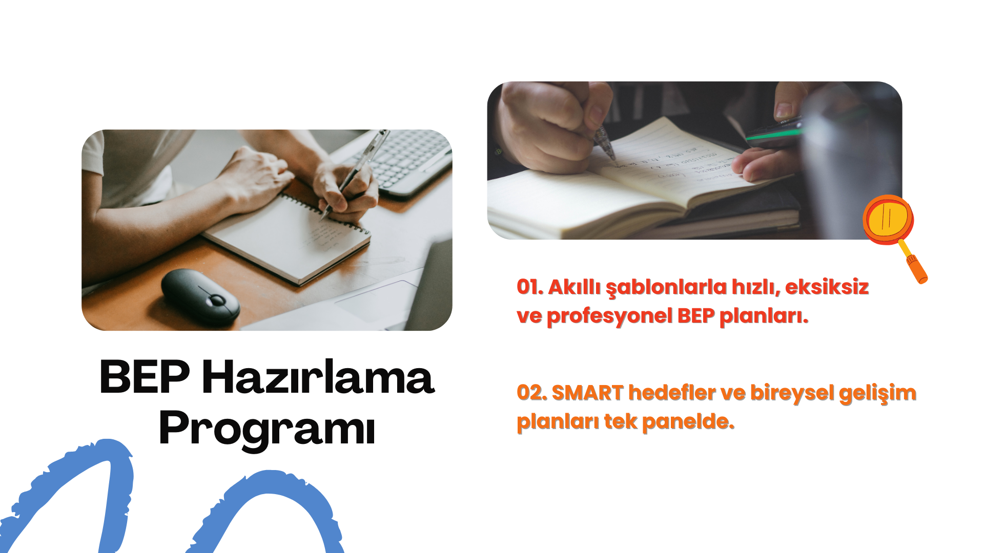 Özel gereksinimli öğrenciler için hızlı, kolay ve etkili BEP hazırlama yazılımı.